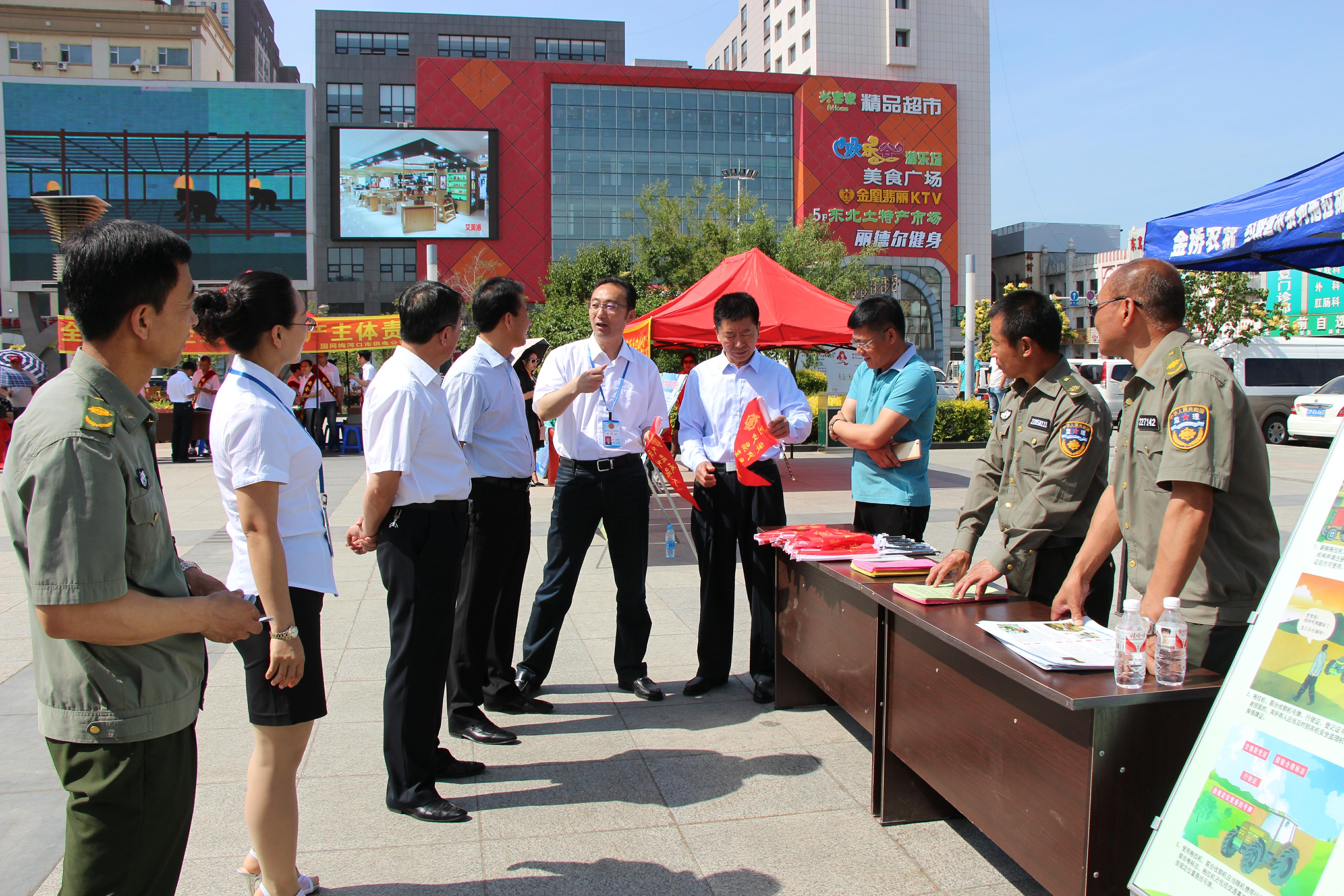 6月16日,在梅河口市站前广场的该市农机管理总站“安全生产宣传日”咨询台,一面面小红旗深深的吸引了过往的群众和市政府及有关部门的领导,成为了该市“安全生产月”集中“宣传咨询日”活动现场一道靓丽的风景。