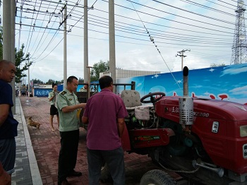 三是开展田查路检,对没有反光贴标识贴的拖拉机随时发放、粘贴反光贴,提高反光标识贴的发放粘帖率,提高拖拉机、联合收割机夜间行车安全。