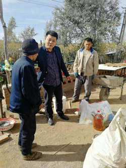 10月4日中秋节,伊通县营城子镇农机站全体工作人员,在站长张正国同志的倡议下,自掏腰包,购买一些慰问品,慰问各自包保的贫困户。大家积极响应,放弃休息,慷慨解囊,购买了大米、白面、豆油、月饼等慰问品,送到杂木村每人所包保的贫困户家中。站长张正国同志包保的贫困户丛德林不在本村居住,暂居在距杂木村十多公里的横河村七组,张正国同志又不辞劳苦,赶到那里,把节日慰问品亲自送到贫困户丛德林的手里。