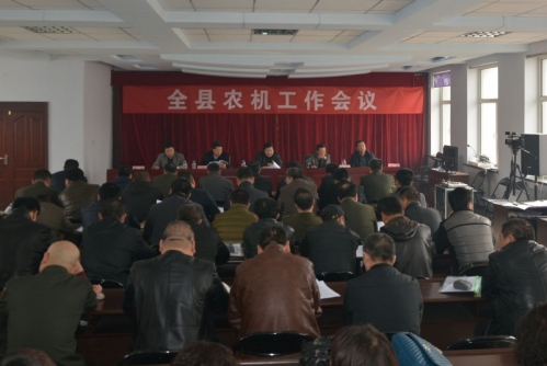 下图为,县农机局局长孙险峰同志(左三)在全县农机工作会议上做重要讲话。
