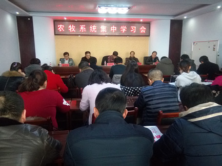 近日,农牧局在农科总站六楼会议室召开农牧系统集中学习会,传达学习、贯彻落实了市委、市政府会议精神,参加会议的有农牧局机关全体干部和各站所副职以上领导共计60余人,会议由局纪委书记主持。会上,农牧局局长就如何学习好、贯彻好市里相关会议精神,做好2016年安全生产及各项工作,做了部署安排,全体参会人员都能认真遵守会场纪律,严格要求自己,积极主动学习。