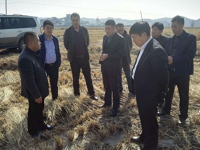 调研组首先来到珲春市板石镇湖龙村松哲农场,对地膜水稻项目进行调研,调研组深入田间地头,与项目负责人亲切、深入的交谈,地膜覆盖种水稻属于农作物栽培技术,该技术主要通过种子上面覆盖地膜,沟底直播稻种,保水保温,防止水土流失,确保水稻高产稳产。该项技术简便易学,便于推广普及,成本低,效益显著。