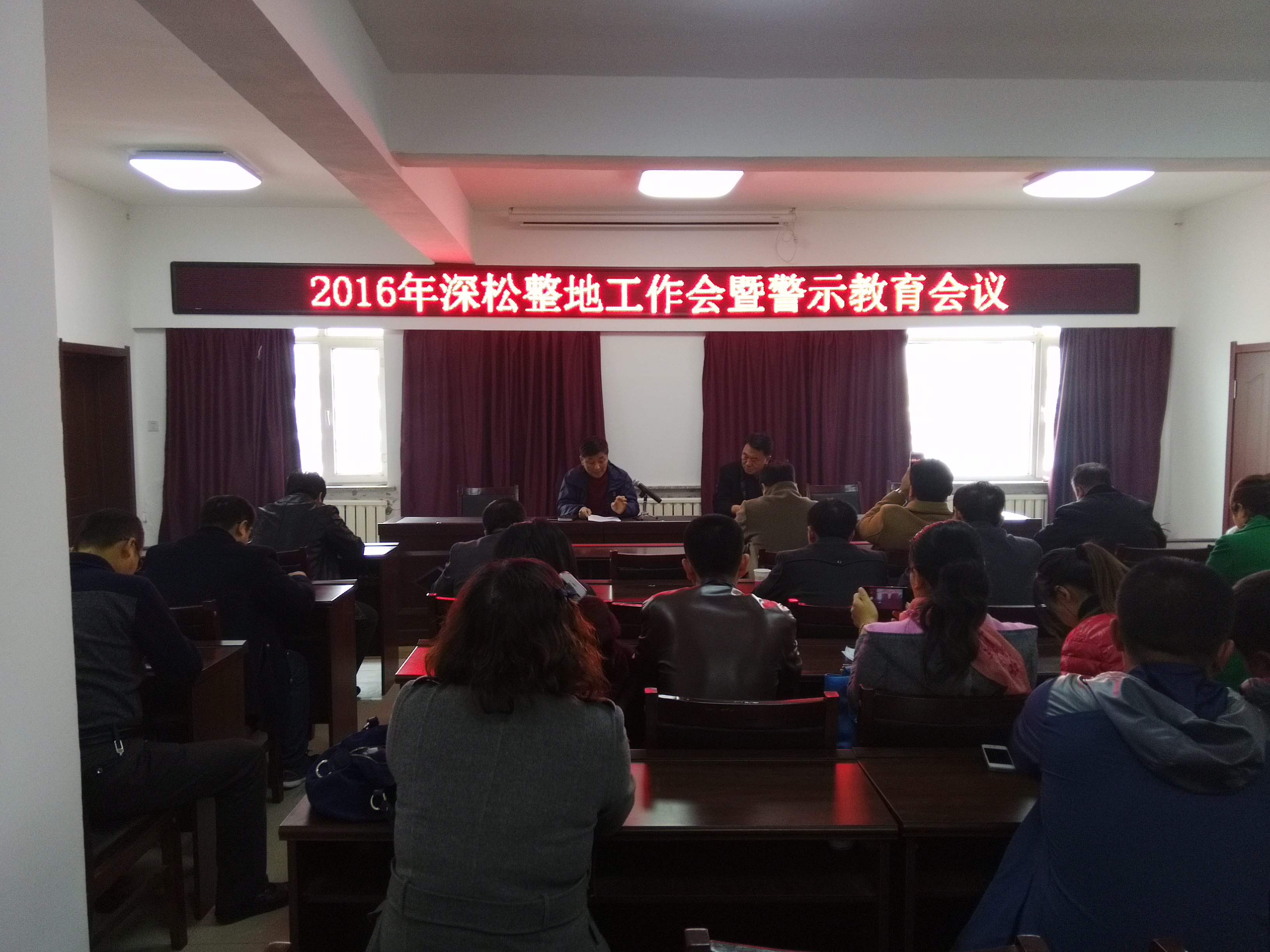 2016年10月24日下午,2016年深松整地工作会暨警示教育会议在农机局五楼会议室召开。农机局副局长许明、推广站站长单学军及推广站工作人员、各乡镇街农机站长共26人参加了此次会议。