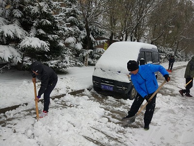 珲春市迎来初冬第一场雪,给市民出行带来不便,路面湿滑,为确保交通顺畅,2016年11月5日星期六,珲春市农机局全体干部职工响应珲春市农业局的安排,来到位于珲春市车大人工河南岸的清雪分担区进行清雪义务劳动,在全体农业系统工作人员的努力下,分担区近1000米道路两旁、居民小区道路、桥头的积雪,利用两个多小时的时间基本清理完毕。
