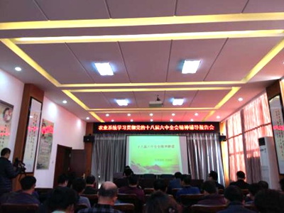 为深入学习贯彻十八届六中全会精神,11月28日,区农业局召开学习十八届六中全会精神专题辅导报告会,邀请区委党校吴威威老师以“十八届六中全会精神解读”为题作专题辅导报告。