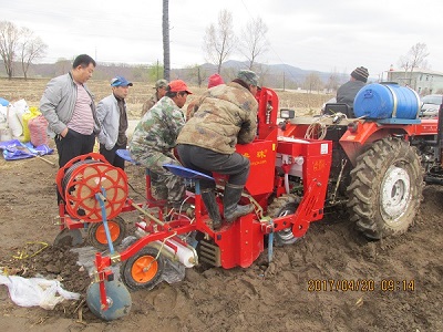4月20日上午,珲春市哈达门乡平安村平安绿风蔬菜种植专业合作社马铃薯机械播种作业即将开始,得知这一消息,市农机技术推广站站长穆新等4名工作人员立刻赶到马铃薯播种地块。技术人员与该合作社农机手一起对播种机设备进行调试,经过反复几次调整和播种试验,播种达到了较为满意的效果。